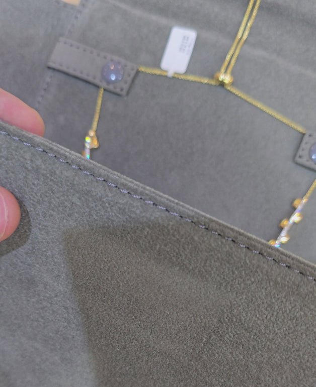 This piece can be worn as both a necklace, or a choker that sits high-up on the neck. It has a sliding silicone-bead adjustment on the back, which allows it to easily slide from being to a necklace.