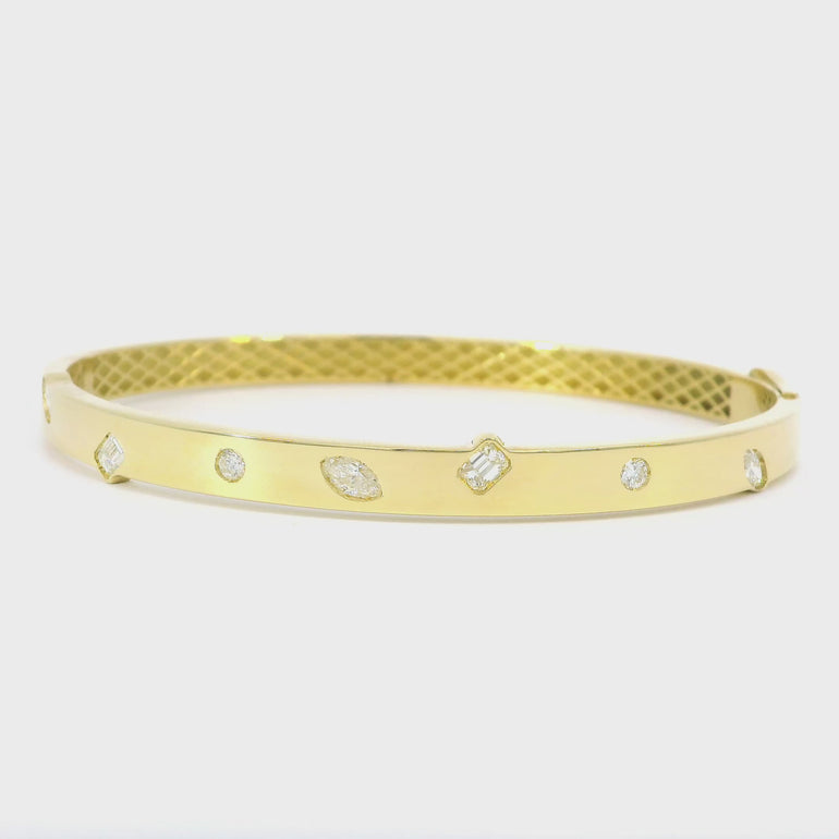 A fan-favorite. This bracelet is a top choice for so many people, and got great reason. It goes with everything, it can worn up or worn down, and the way that some gems are popping out of the bangle frame gives a classic bangle a very modern approach.