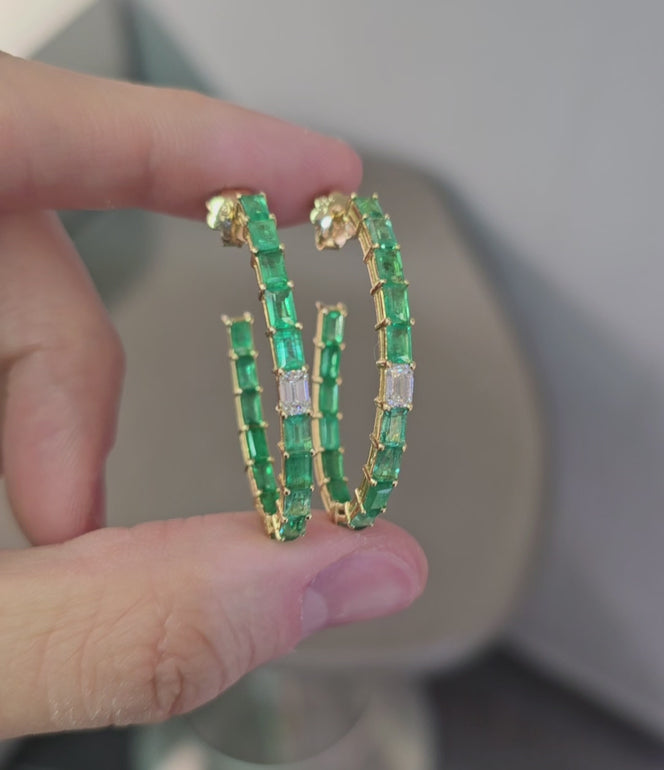 Emerald & Diamond Baguette Hoops