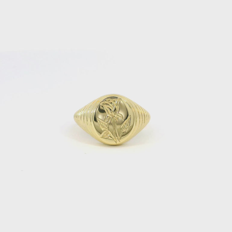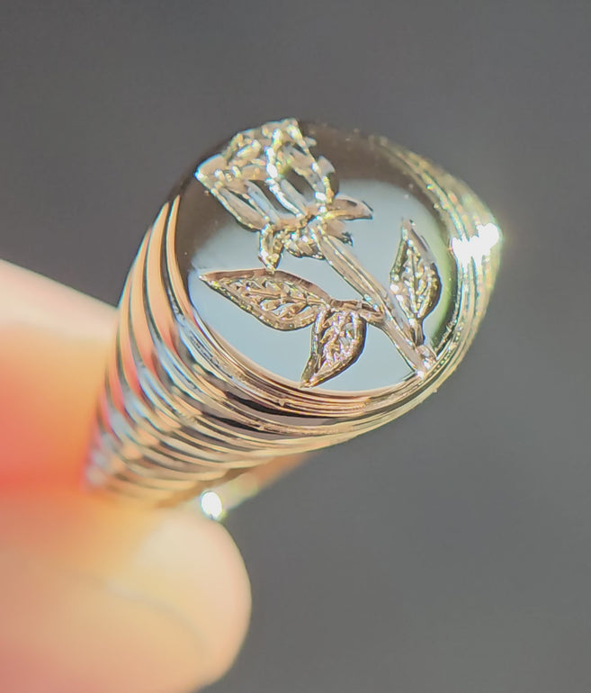 The featured ring displays a hand-engraved rose by default. If you wish to customize the engraving, you can reach us on the WhatsApp icon below.