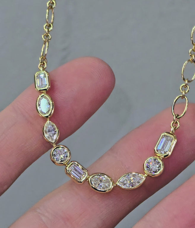 Multi-Shape Bezel Diamond Necklace