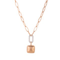 Adds effortless style and considered ideal for any stack. It's a reflective polish 3D cube pendant that looks best at the bottom of your stack, anchoring all your necklaces in place. With an extra dash of diamonds, held together by a substantial paperclip chain.